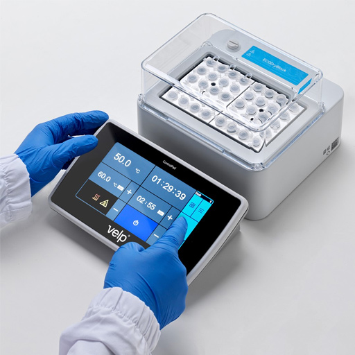 Velp's dry block heater offers maximum versatility with a wide range of interchangeable and easy-to-clean aluminum blocks, designed to accommodate vials, microcentrifuge tubes, PCR tubes, PCR strips, Greiner tubes, microplates and cuvettes.